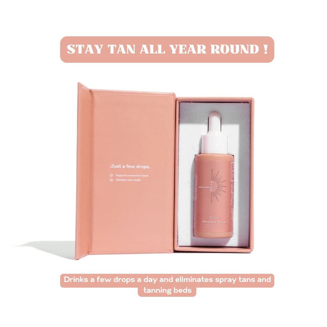 No. These are drinkable beauty drops designed to support radiance from within, not a surface-level tan.